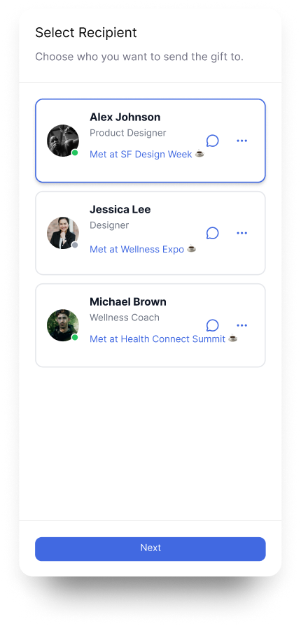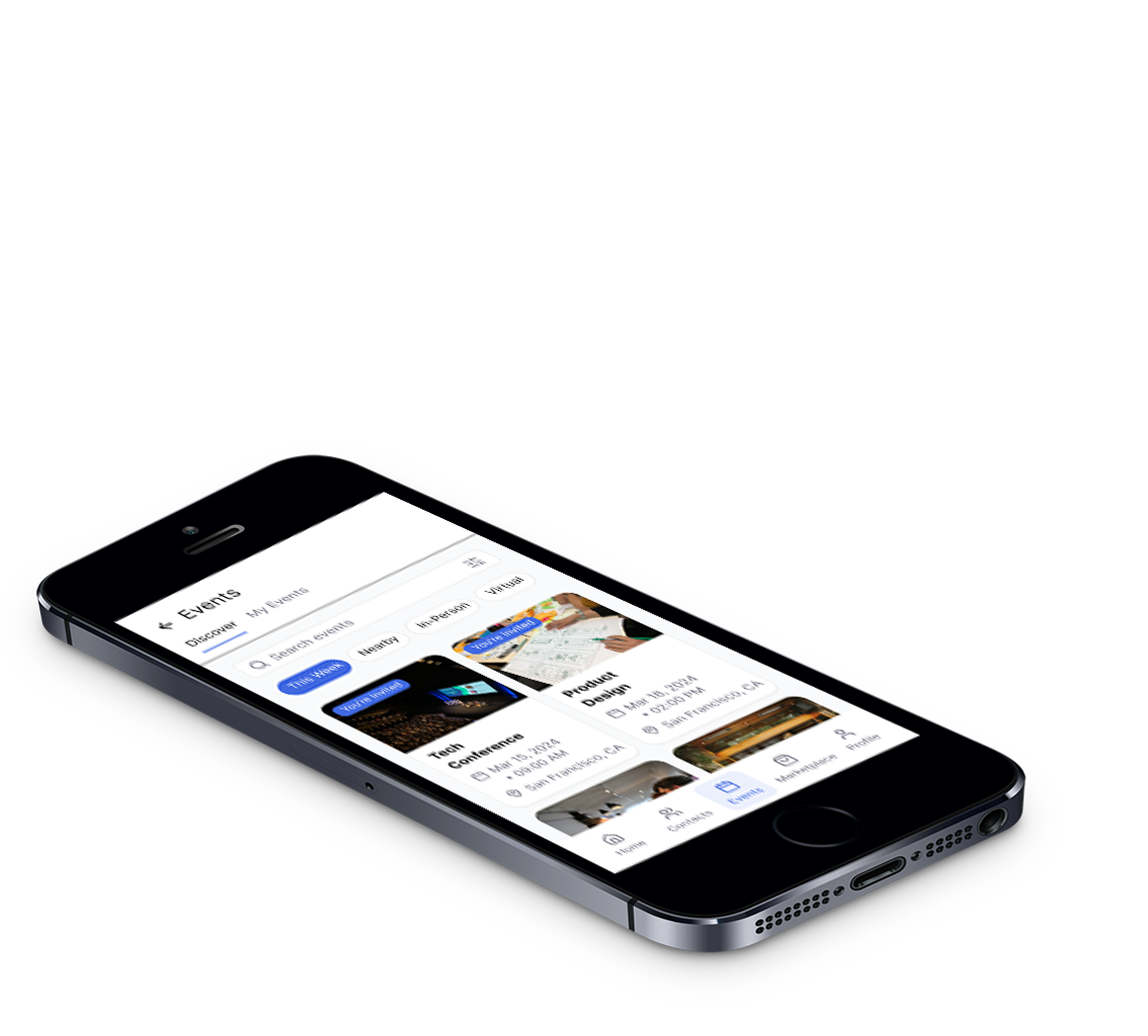 Browse and discover profiles, send connection requests, and build your network. Once connected, conversations and event invites are just a tap away.