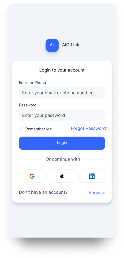 AIO Link is an all-in-one networking platform that helps you connect with people, message instantly, manage meetups and events, and discover services, products, and digital gifts—all in one app.
